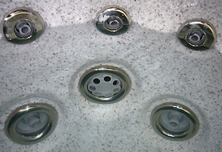 Estos chorros cromados, opcionales, añaden al spa ORQUIDEA unos acabados de gama alta.