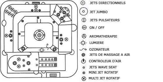 La ergonomía y la profundidad de los asientos le ofrecerán un gran confort durante el baño. Su spa está equipado de un sistema de desinfección con ozono para conservar un agua siempre limpia.