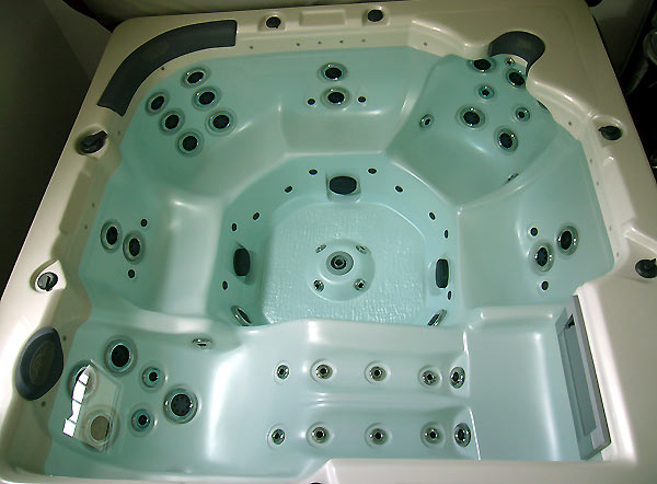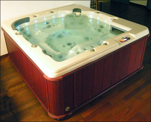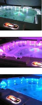 Unos LEDs electroluminosos, así como un foco sumergido para la iluminacion, están situados en el contorno interior del spa.