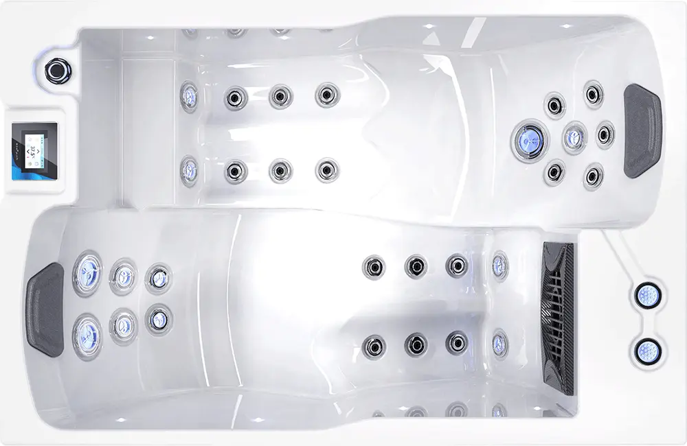 El Spa Tandem combina compacidad y tecnología para ofrecerle una experiencia de relajación excepcional para dos. Sus dimensiones compactas hacen del spa Tandem una opción especialmente adecuada para espacios pequeños.