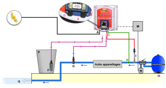 Esquema del montaje de una bomba dosificadora de pH REGULUS