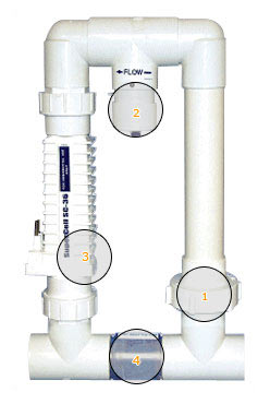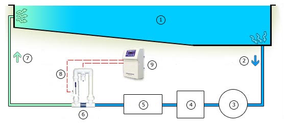 Es importante colocar la célula después de cualquier otro equipamiento (calentador, filtro, etc...)