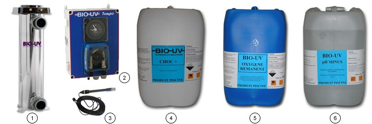 BIO UV es un concepto de tratamiento del agua sin cloro basado en la tecnologia de la desinfeccion con los UV de tipo C. Actualmente, mas de 11000 piscinas y spas (jacuzzi) se equipan con esta tecnologia.