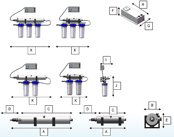 | Modelo | BIO UV Home 2 | BIO UV Home 3 | Estación BIO-UV Home 2.2 m3/h + 2 Filtros | Estación BIO-UV Home 2.2 m3/h + 3 Filtros | Estación BIO-UV Home 3.2 m3/h + 2 Filtros | Estación BIO-UV Home 3.2 m3/h + 3 Filtros |
