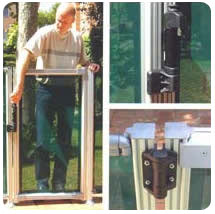 La puerta incorpora un mecanismo que la cierra automáticamente, en cualquier posición de apertura en la que se encuentre. Esta condición cumple con la norma NF P 90-306, imprescindible para piscinas colectivas.